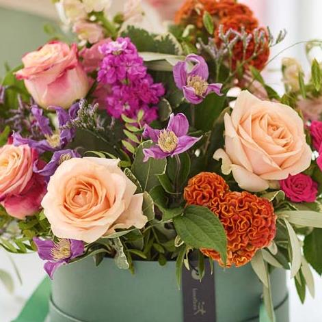 Pull out all the stops with the ultimate hatbox showstopper. No, we're not talking about a big fluffy hat, we're talking about gorgeous fresh flowers arranged just so in a stylish box.