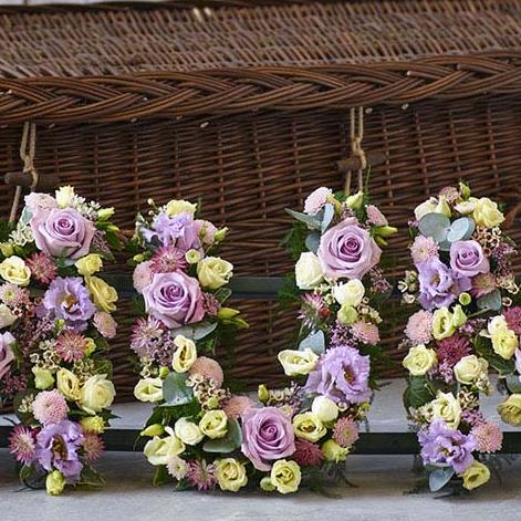 Crafted in soft lilacs and creams, this beautiful tribute features roses, delicate waxflower, chrysanthemum and astrantia.